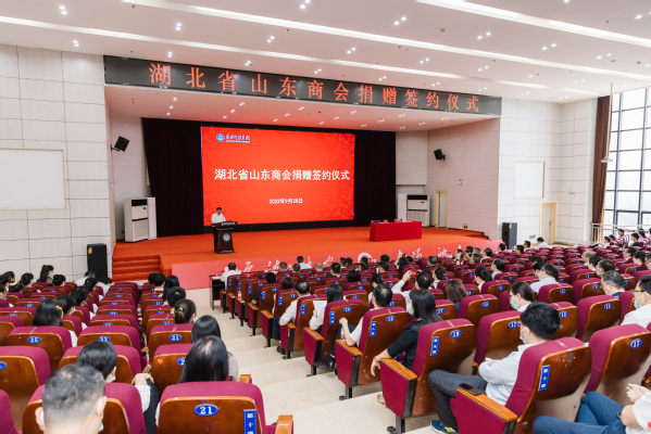 李文帅在致辞中指出,山东人民和黄冈人民在鄂鲁两地携手共抗疫情过程中,结下的友情厚重如山、情深似海,在投身教育公益事业上,商会与黄师建立了根深蒂固的深厚友谊。希望通过此次捐赠,能够鼓励更多优秀的教师坚守立德树人的初心,为党育人、为国育才。勉励更多的学生树立远大理想,为己修身、为国修业,做一个有理想、有道德、有文化、有纪律、有担当、有作为的优秀社会人才,为祖国的伟大复兴不懈奋斗。山东商会将和黄师进一步增进往来,加强交流与合作,齐心协力为黄师的建设和教育事业的发展以及人才培养做出更大贡献。